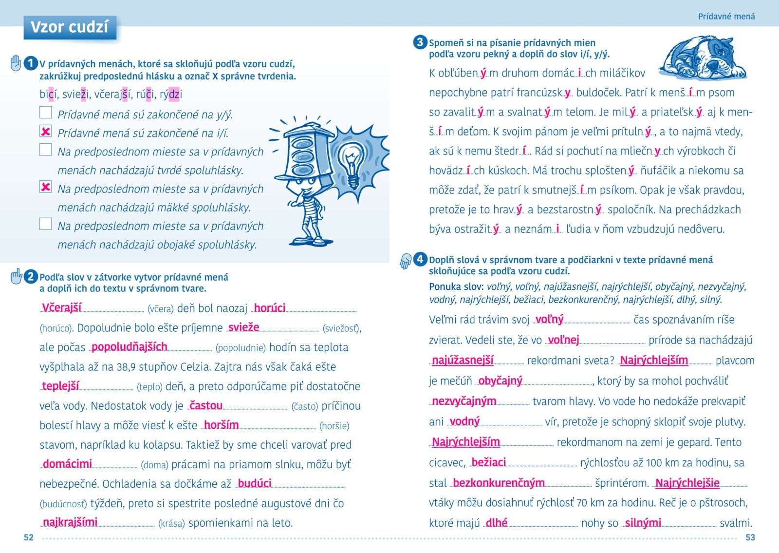 Pravopisný semafor ponúka rôznorodé cvičenia s dostatočným priestorom na vpisovanie, koncept je postavený na systéme troch postupných krokov: